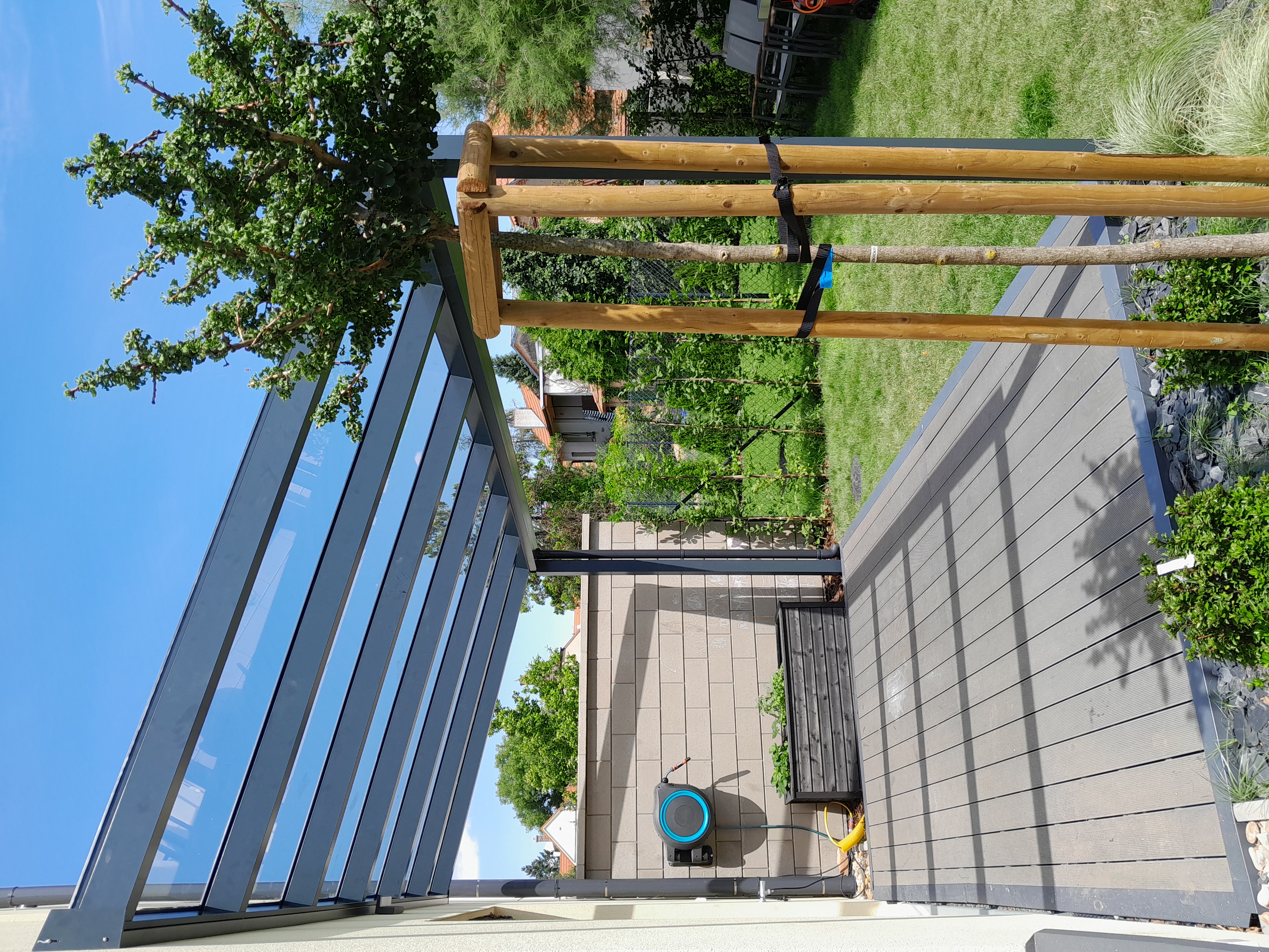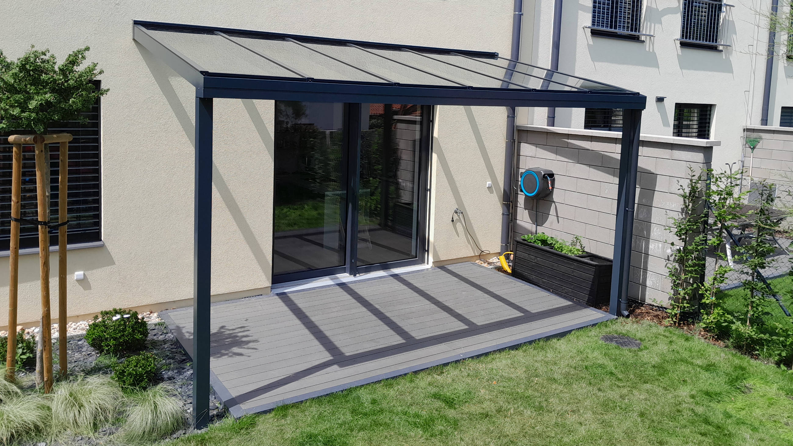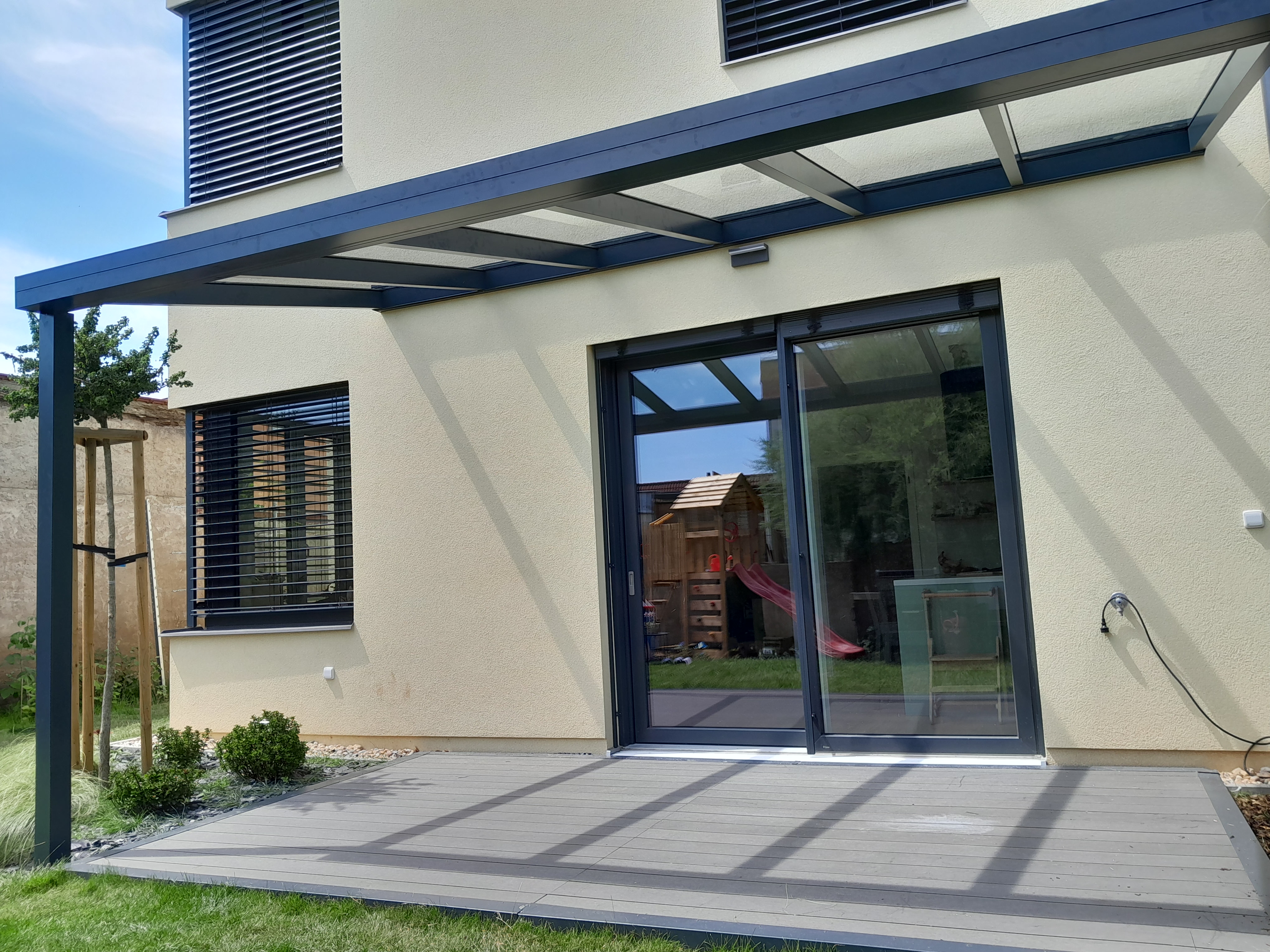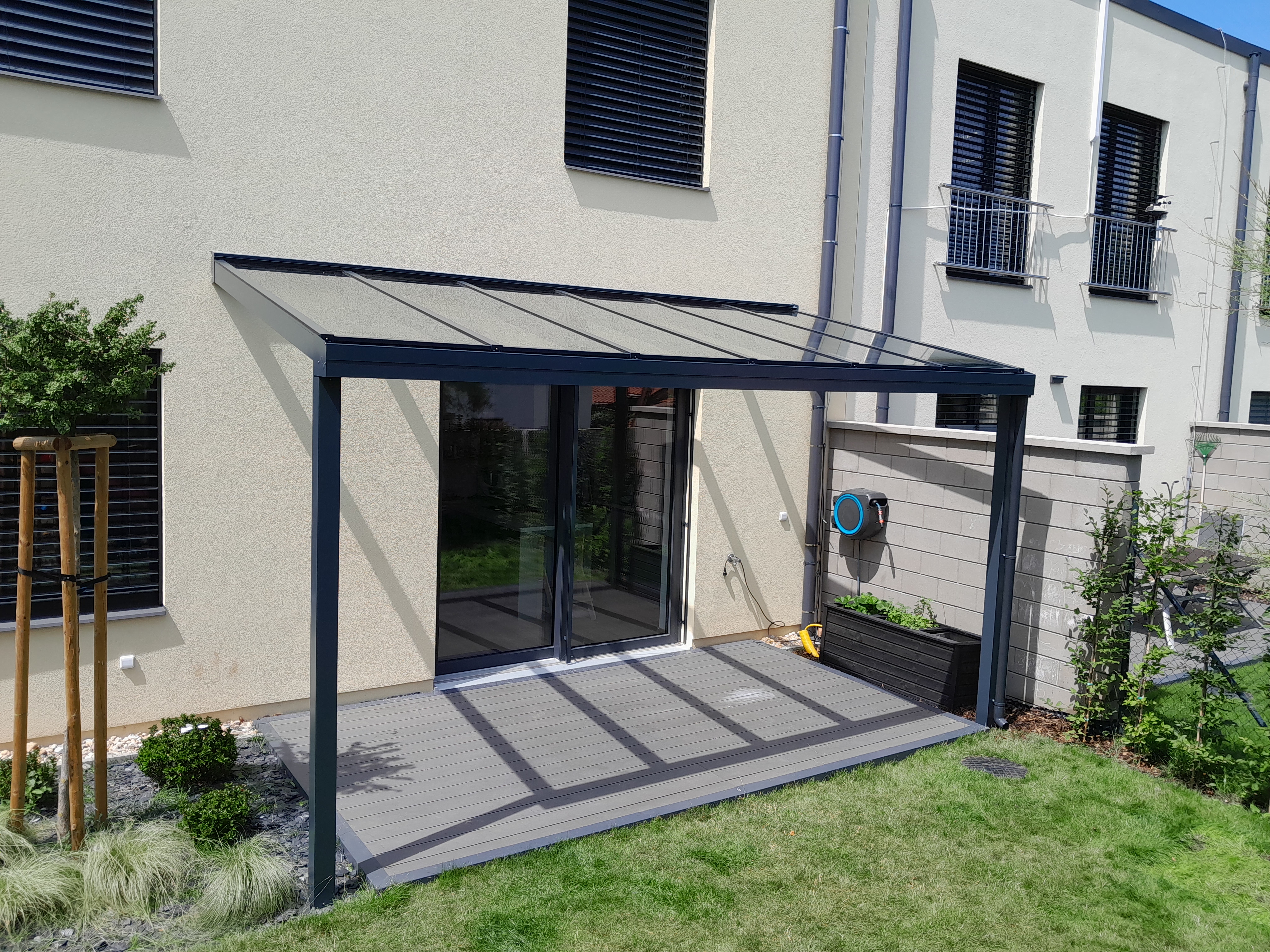 Hliníkové pergoly ke zdi domu