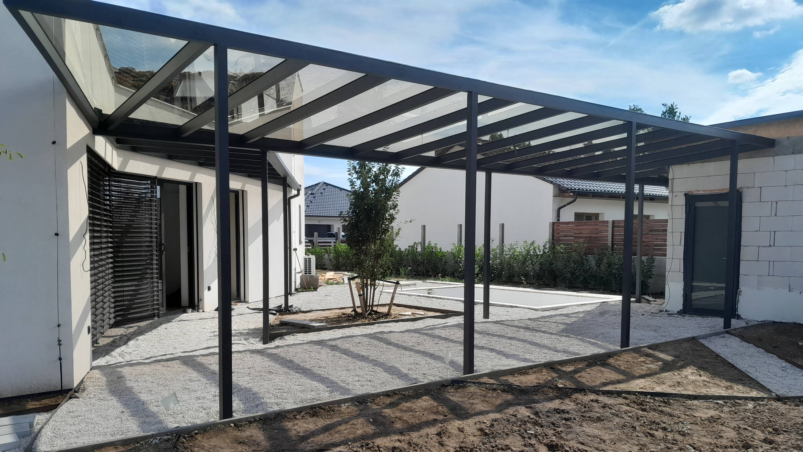 Hliníkové pergoly ke zdi domu