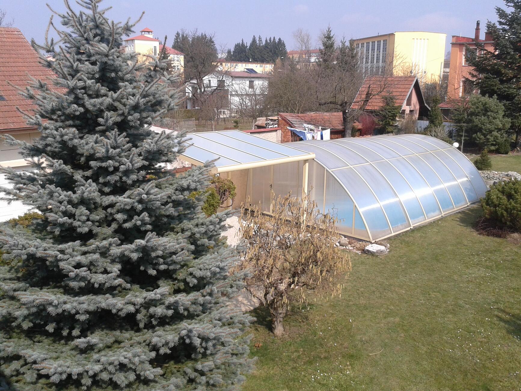 Pergola zasklená bezpečnostním sklem s mléčnou folií