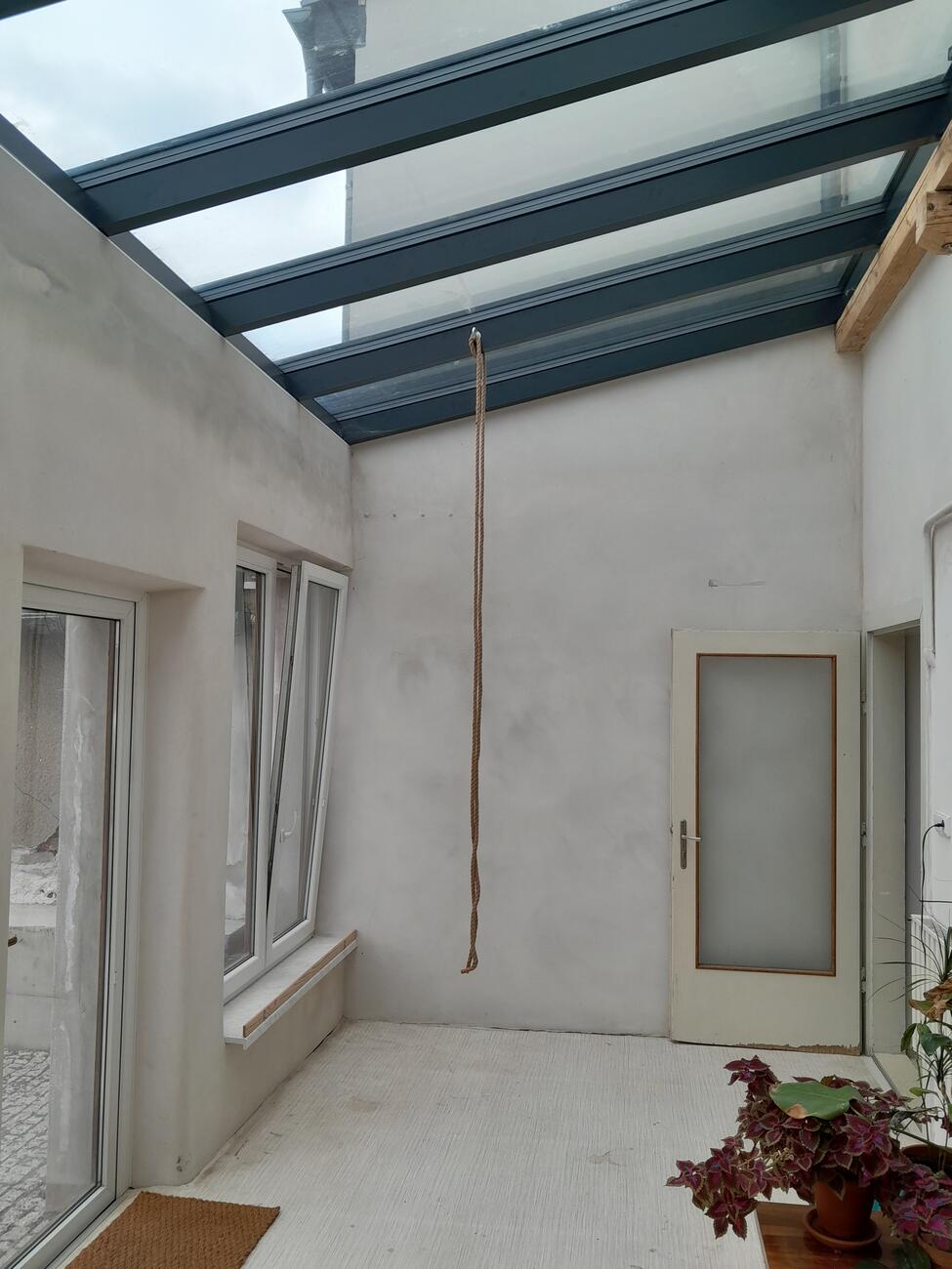 Rozšíření obytného prostoru o původní verandu. Prosklení zajišťuje dostatek světla jak v novém prostoru tak i ve vedlejším obývacím pokoji. Izolační trojsklo zajišťuje tepelnou pohodu i v zimě, kdy je prostor vytápěn krbovými kamny z obývacího pokoje. V létě stínění není třeba, orientace prosklení je k východu.