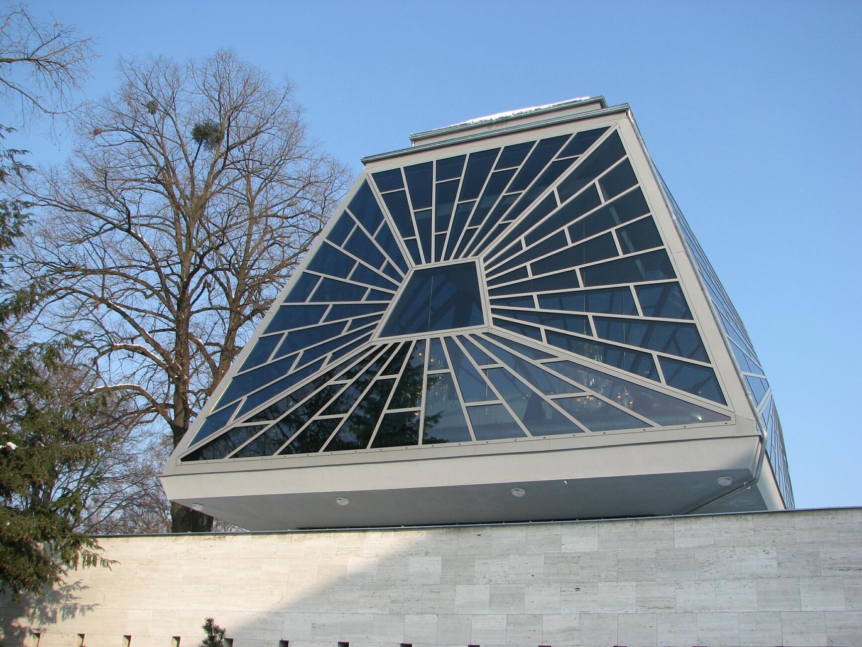Replika nefunkčního původního provedení zaskleného jednoduchým sklem. Při rekonstrukci v roce 2008 použito "trojsklo" HEAT MORROR, které má místo prostředního skla speciální folii a prostor byl klimatizován.