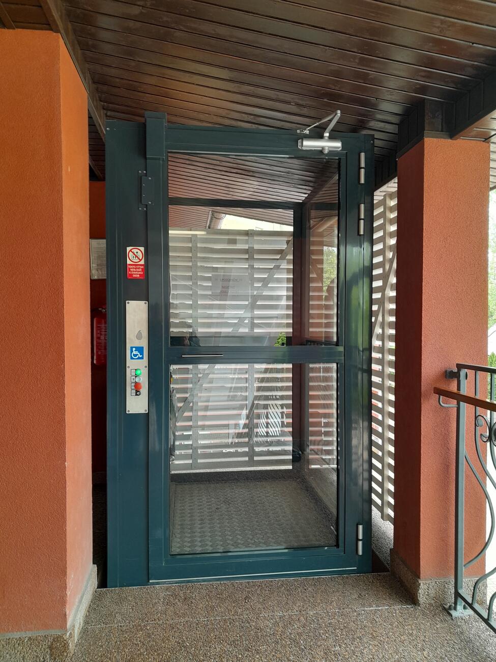 Šachta výtahu Manus prosklená jednoduchým sklem v domově pro seniory
